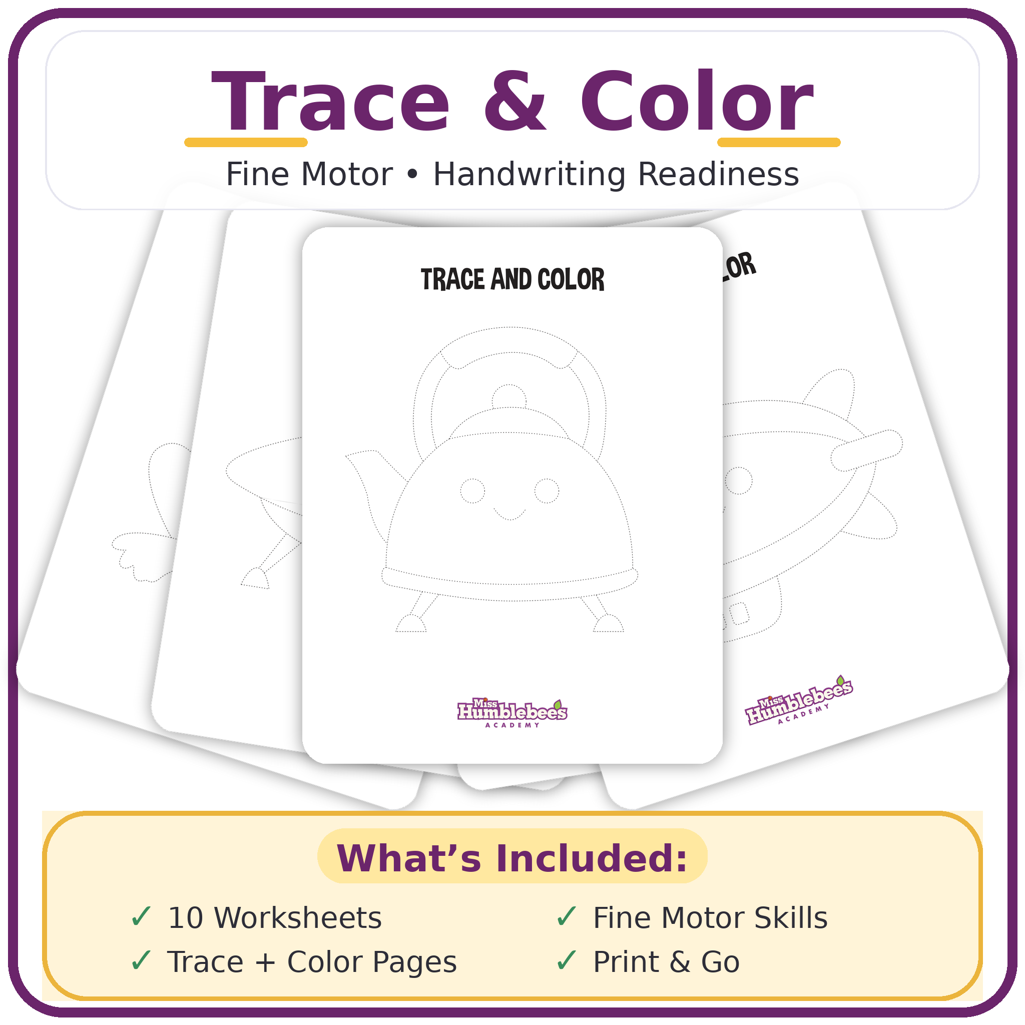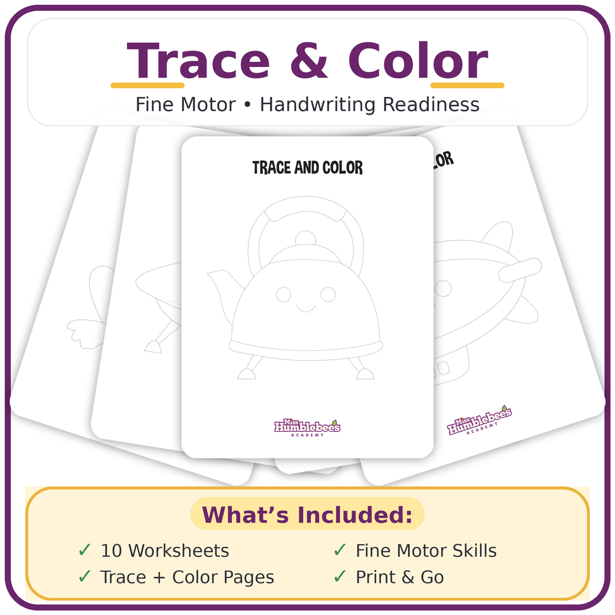 Trace and Color Worksheets Printable Bundle (Fine Motor & Handwriting Readiness)